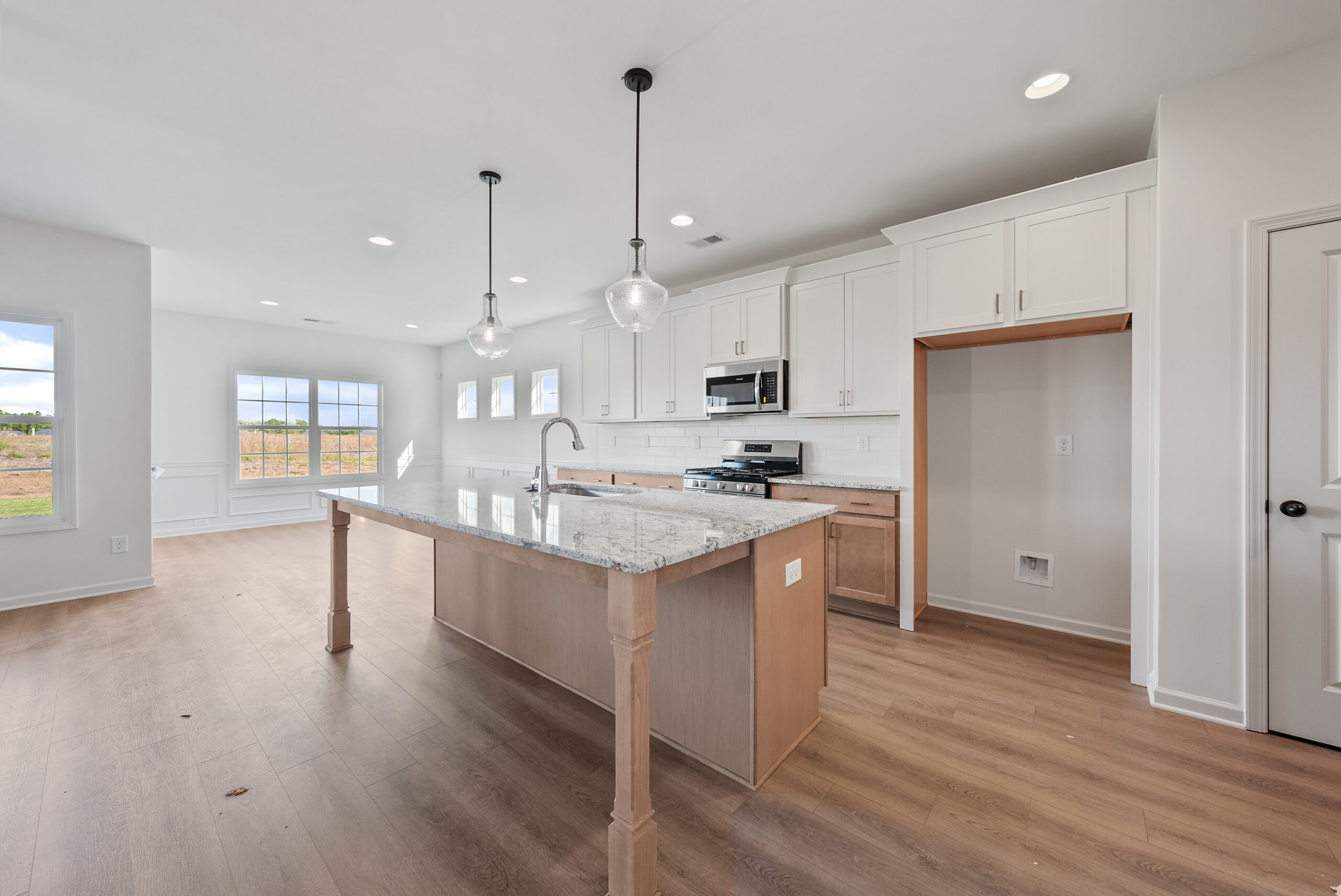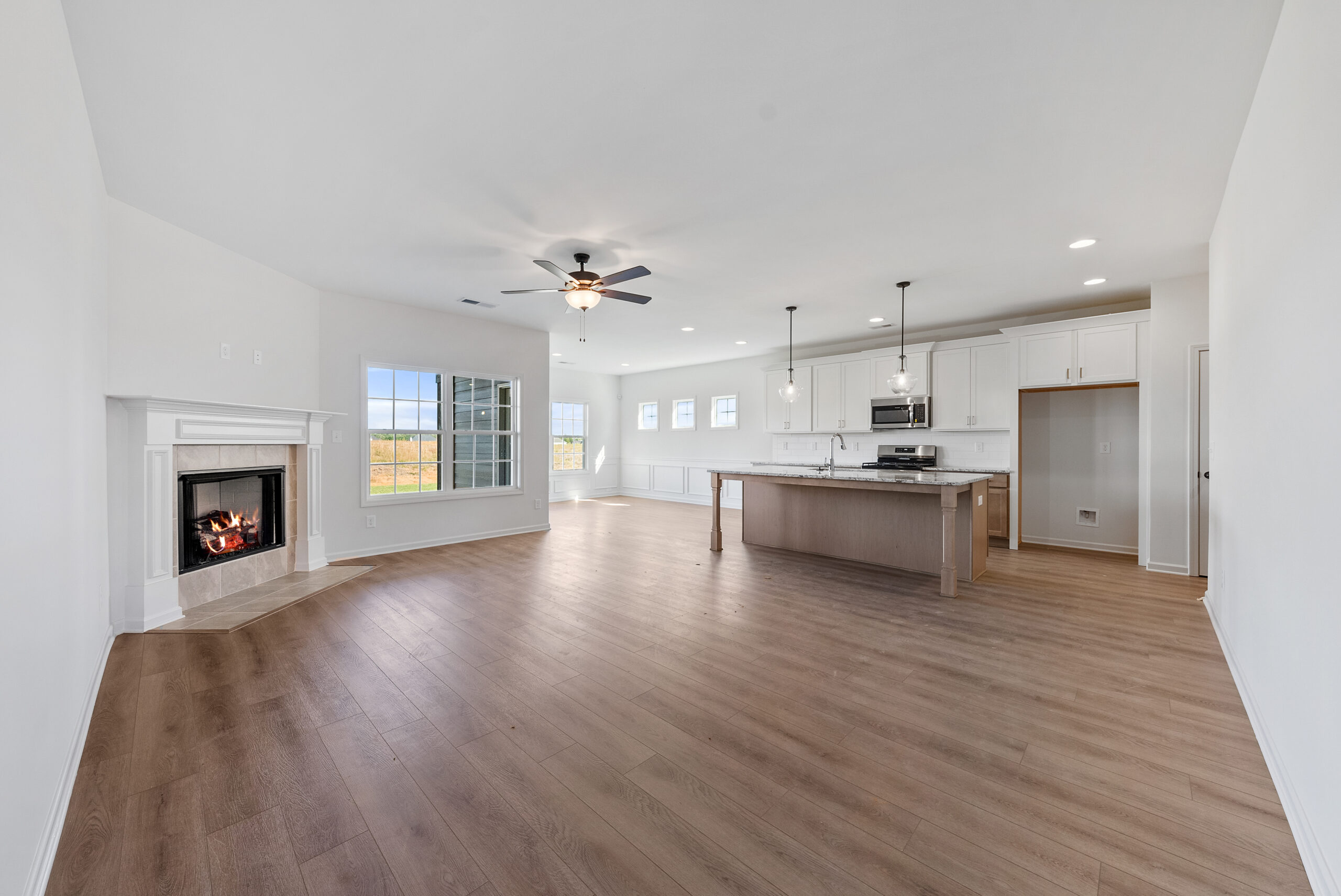 Step inside the light-flooded foyer and be captivated by the open concept design. The spacious great room with a fireplace beckons relaxation, while the large kitchen boasts stylish cabinetry, granite countertops, a designer backsplash, and top-of-the-line stainless steel appliances – a chef's dream! A large island anchors the space, seamlessly connecting the kitchen, dining area, and great room, perfect for entertaining. The owner's suite on the main level offers a private sanctuary bathed in natural light. Featuring dramatic trey ceilings, the spa-like owner's bath boasts a relaxing garden tub, a separate tiled or fiberglass shower, his and hers vanities, and a spacious walk-in closet. A convenient drop zone keeps everyday clutter at bay, and the laundry room is tucked away on the main level for added ease. Upstairs, explore the versatile open media room – the perfect space for family movie nights or game days. Additional spacious bedrooms with ample closet space provide comfortable havens for family or guests. Two car garage, covered patio and tons of Hughston Homes included features!