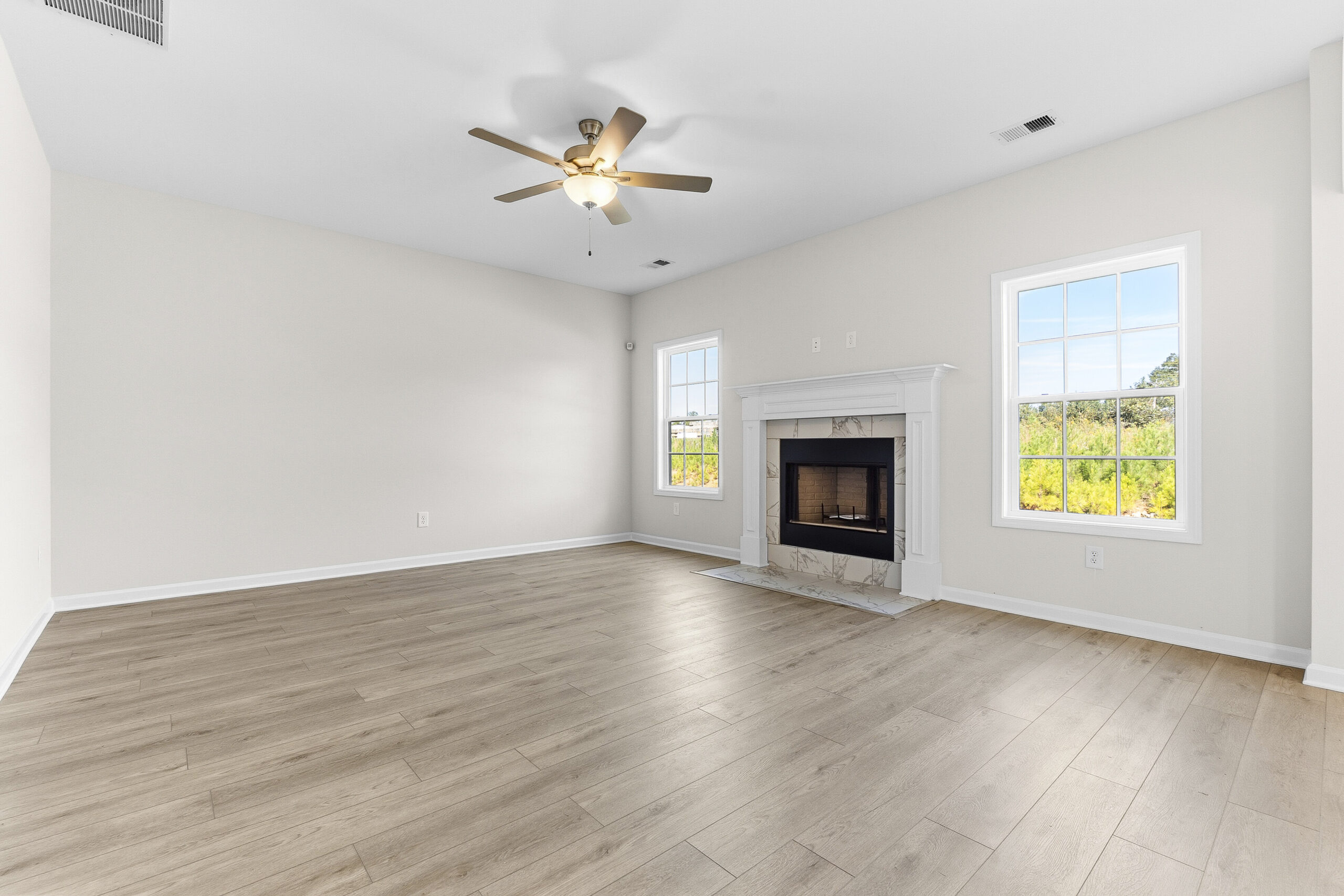 At Juliette Crossing, you'll enjoy thoughtful details like stone or brick accents on your home's exterior, energy-efficient MI windows, and cozy fireplaces both inside and out. The kitchen features stainless steel appliances and a spacious island, perfect for gathering. Step out back to unwind on your Signature Game Day Porch and make the most of every evening.