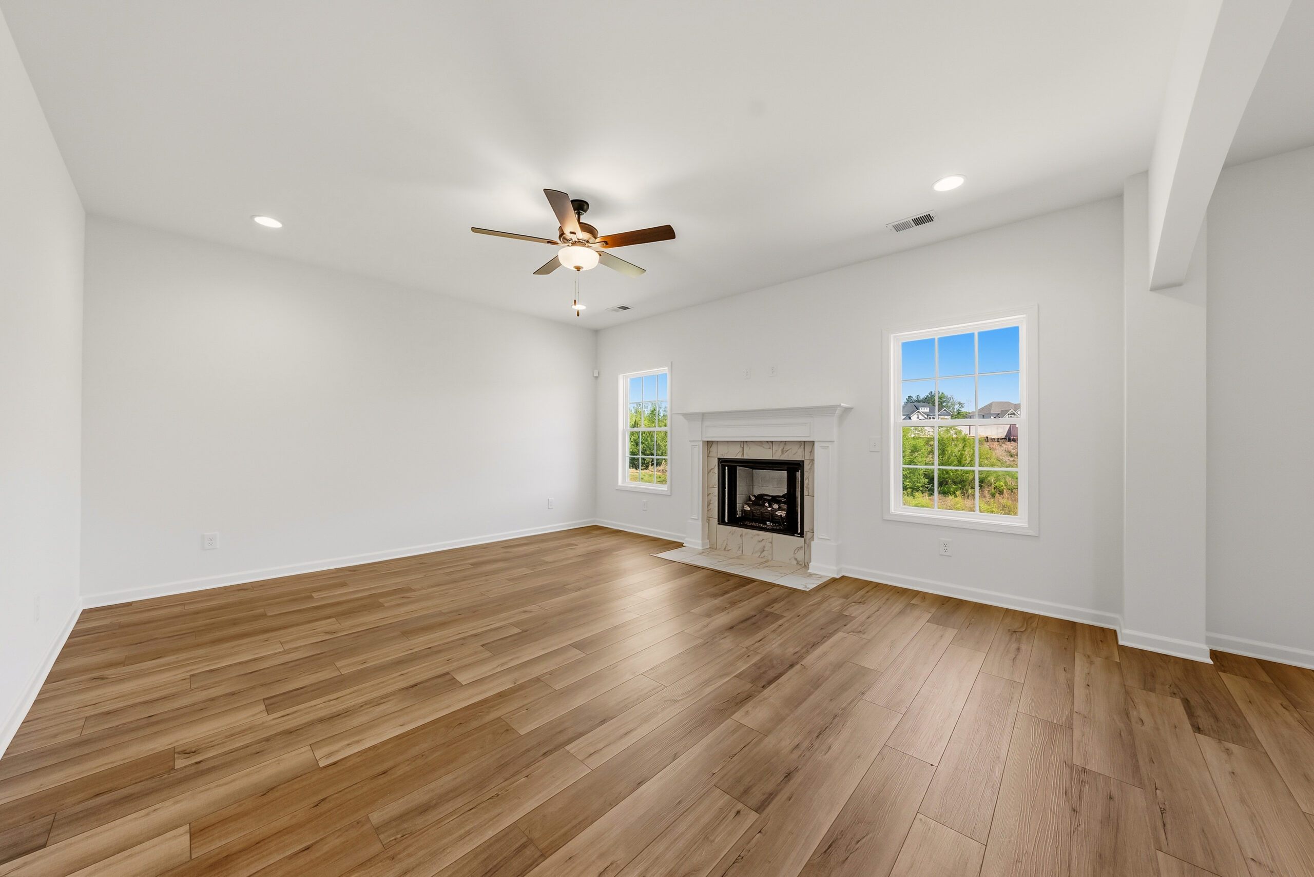 The Landings at Academy Drive features community sidewalks for leisurely strolls, gourmet kitchens, cozy interior gas log fireplaces in the great room, and energy-efficient spray foam insulation. End your day relaxing on Hughston Homes’ Signature Gameday Porch, complete with an inviting outdoor fireplace.