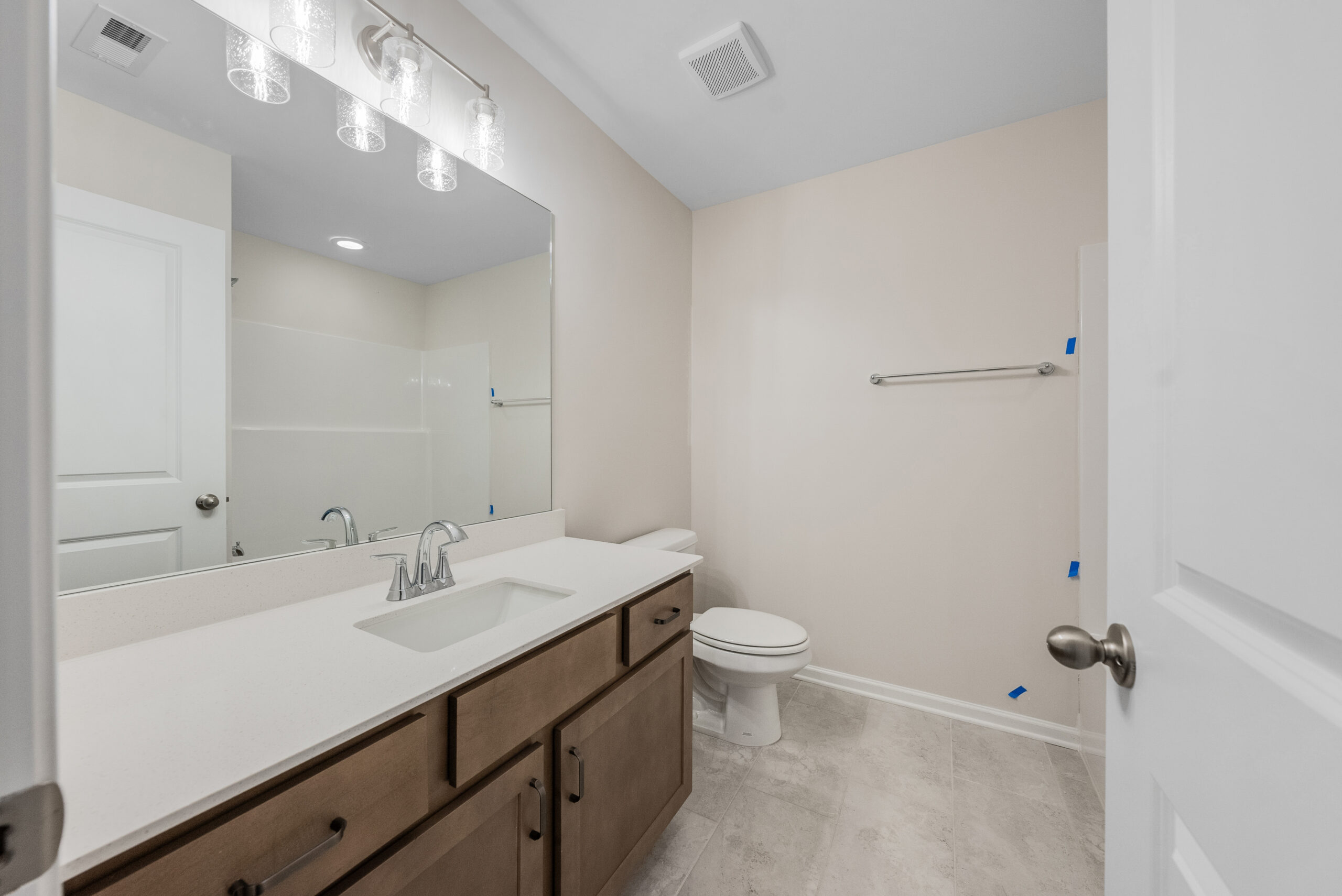 This open concept floorplan boasts natural light throughout. Entertain seamlessly in the formal dining room with elegant details, then flow into the spacious great room featuring a cozy gas fireplace. The open kitchen impresses with its abundance of stylish cabinetry, luxury countertops, a tiled backsplash, and top-of-the-line stainless steel appliances. A massive island provides ample prep space and casual dining, while a walk-in pantry ensures organized storage. The owner's entry features a convenient drop zone to keep everyday clutter at bay. On the main level, a versatile 5th bedroom with a full bath offers additional living space. Upstairs, unwind in the generously sized owner's suite, complete with a spa-like bathroom featuring a garden tub, tiled or fiberglass shower, and a huge walk-in closet. Additional bedrooms provide ample closet space and are conveniently located near the laundry room and hall bath. Two Car Garage, Our Gameday Patio with Outdoor Fireplace is the Perfect Space for Fall Football & Tons of Hughston Homes Included Features!