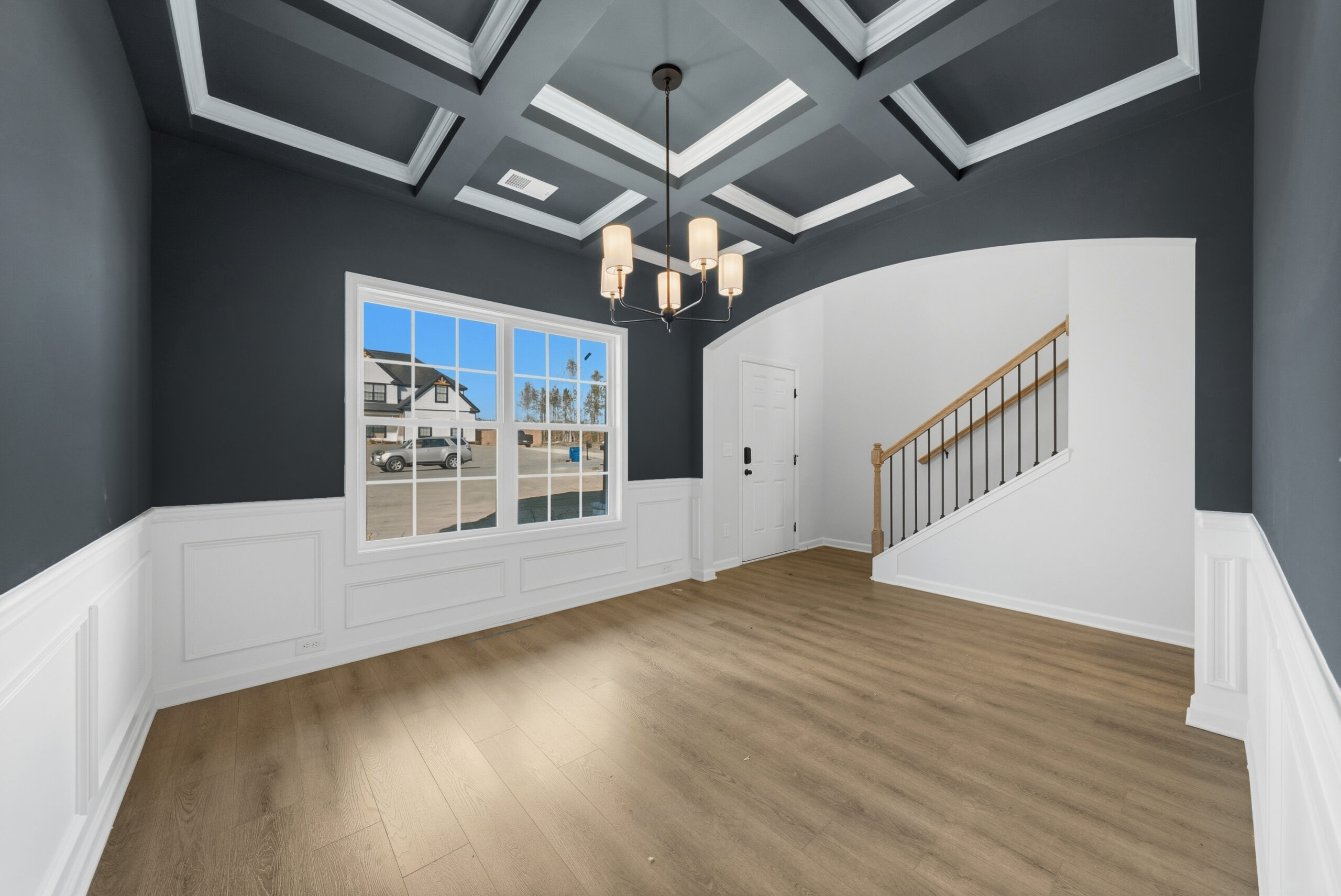 Step into a grand two-story foyer that leads to a formal dining room, perfect for entertaining. The open concept layout seamlessly connects the spacious great room, flooded with natural light, to the gourmet kitchen. This culinary haven boasts stylish cabinetry, granite countertops, a designer backsplash, and top-of-the-line stainless steel appliances. A large island offers ample prep space and casual dining, while a walk-in pantry ensures organized storage. Relax by the cozy fireplace in the great room or unwind in the owner's suite, featuring a luxurious bathroom with a garden tub, separate shower, his and her vanities, and a generously sized walk-in closet. Additional bright bedrooms with ample closet space provide a haven for family or guests. The conveniently located laundry room and half bath on the main level complete this exceptional home. Two Car Garage, Covered Patio Perfect for Outdoor Entertaining & Tons of Hughston Homes Included Features!